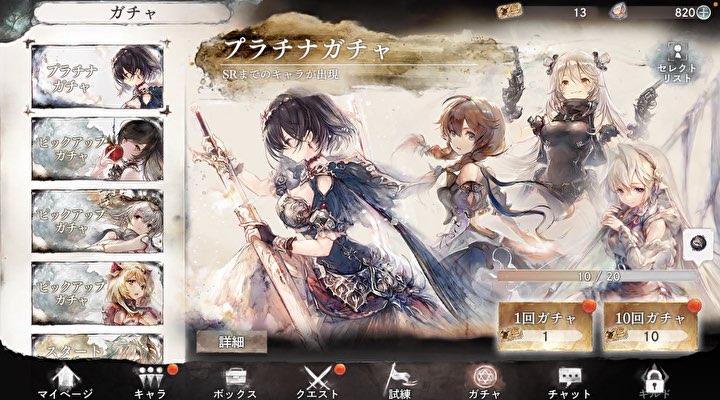 アイリス(/アタッカー)、ソルティーナ(藍/デバッファー)、ルナリンド(冥/アタッカー)モーザ(藍/バッファー、イリア(神呪)(冥/アタッカー)
